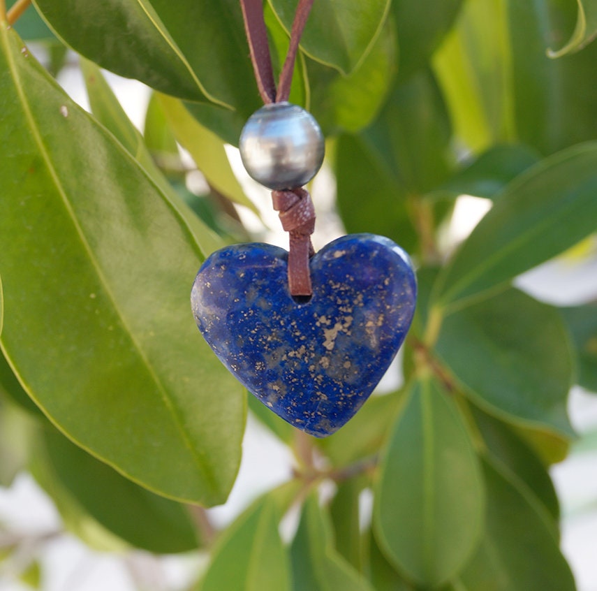 - a heart-shaped lapis lazuli pendant 3 cm by 2.5 cm