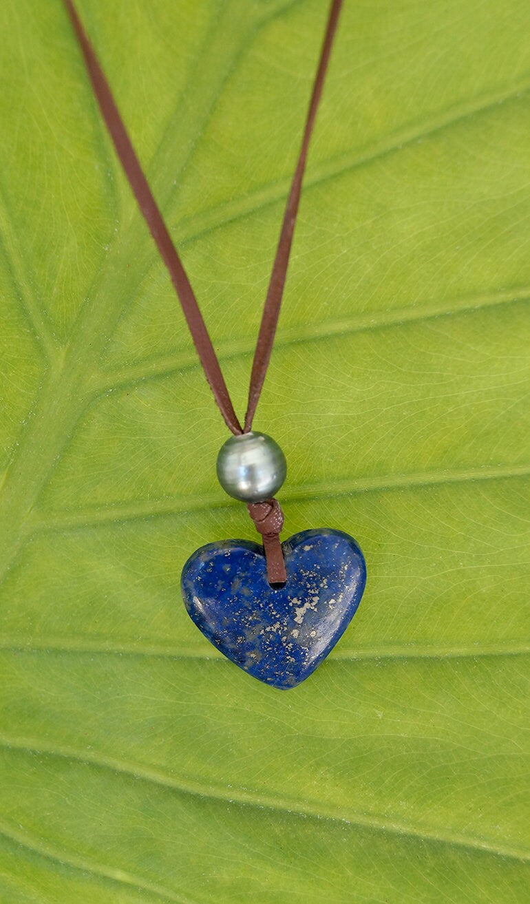 Necklace with a heart pendant in lapis lazuli and Tahitian pearl