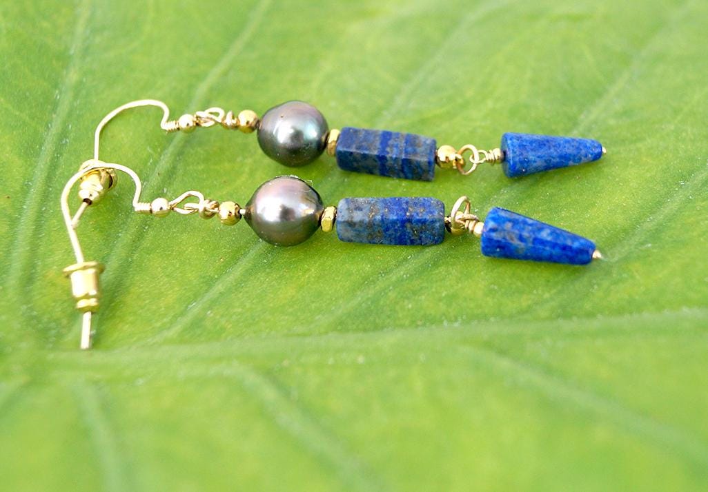 Boucles d'oreilles lapis lazuli et perles de Tahiti - Isia