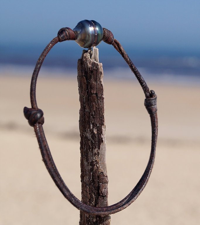 Bracelet homme au design épuré avec sa perle de Tahiti sur cuir naturel. Longueur ajustable avec un fermoir coulissant, qui permet de donner la longueur désirée. Le bijou est composé de :