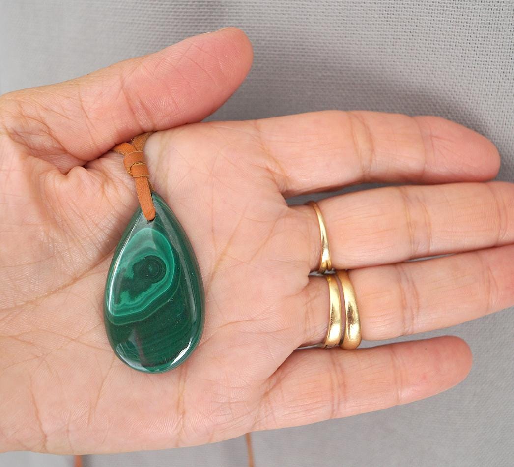 - 1 pendentif en malachite goutte de 4.6 cm sur 2.5 cm
